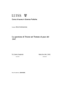 Bruno, Matteo (A.A. 2024/2025) La questione di Trieste nel trattato di pace del 1947. Tesi di Laurea in Storia contemporanea, Luiss Guido Carli, relatore Gaetano Quagliariello, pp. 83. [Bachelor's Degree Thesis]