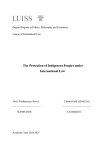 Oddi, Claudia (A.A. 2024/2025) The protection of indigenous peoples under international law. Tesi di Laurea in International law, Luiss Guido Carli, relatore Pierfrancesco Rossi, pp. 88. [Bachelor's Degree Thesis]