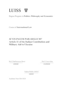 Pelillo, Valerio (A.A. 2024/2025) Si vis pacem para bellum? Article 11 of the Italian Constitution and military aid to Ukraine. Tesi di Laurea in International law, Luiss Guido Carli, relatore Pierfrancesco Rossi, pp. 75. [Bachelor's Degree Thesis]