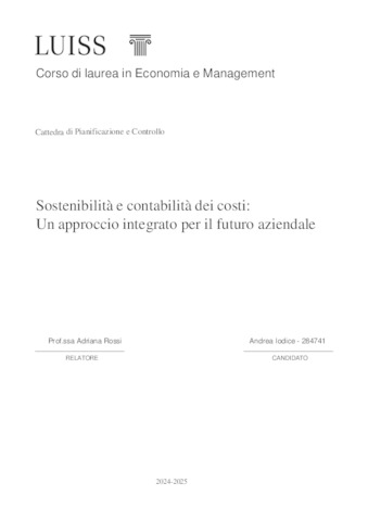 Iodice, Andrea (A.A. 2024/2025) Sostenibilità e contabilità dei costi: un approccio integrato per il futuro aziendale. Tesi di Laurea in Pianificazione e controllo, Luiss Guido Carli, relatore Adriana Rossi, pp. 83. [Bachelor's Degree Thesis]