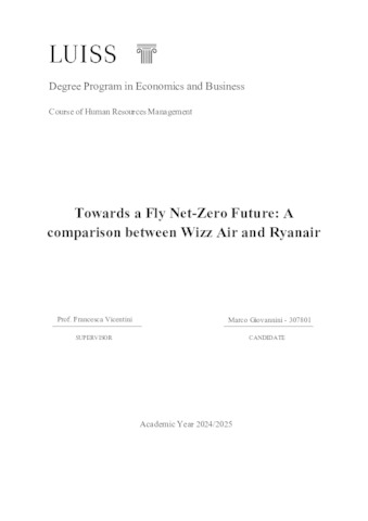 Giovannini, Marco (A.A. 2024/2025) Towards a fly net-zero future: a comparison between Wizz Air and Ryanair. Tesi di Laurea in Human resources management, Luiss Guido Carli, relatore Francesca Vicentini, pp. 90. [Bachelor's Degree Thesis]