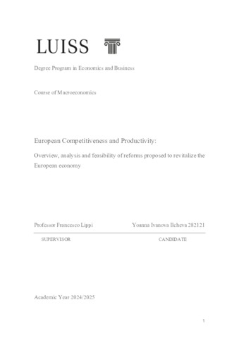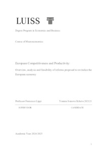 Ilcheva, Yoanna (A.A. 2024/2025) European competitiveness and productivity: overview, analysis and feasibility of reforms proposed to revitalize the European economy. Tesi di Laurea in Macroeconomics, Luiss Guido Carli, relatore Francesco Lippi, pp. 59. [Bachelor's Degree Thesis]