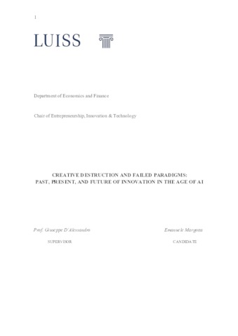 Margotta, Emanuele (A.A. 2024/2025) Creative destruction and failed paradigms: past, present and future of innovation in the age of AI. Tesi di Laurea in Entrepreneurship, innovation and technology, Luiss Guido Carli, relatore Giuseppe D'Alessandro, pp. 75. [Bachelor's Degree Thesis]