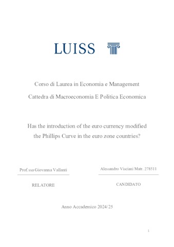 Visciani, Alessandro (A.A. 2024/2025) Has the introduction of the euro currency modified the Phillips curve in the euro zone countries? Tesi di Laurea in Macroeconomia e politica economica, Luiss Guido Carli, relatore Giovanna Vallanti, pp. 32. [Bachelor's Degree Thesis]