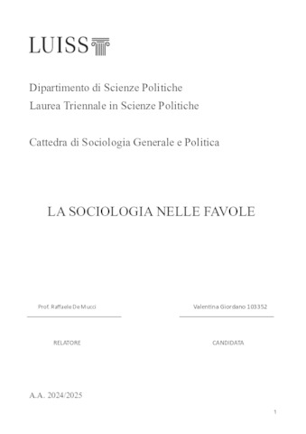 Giordano, Valentina (A.A. 2024/2025) La sociologia nelle favole. Tesi di Laurea in Sociologia generale e politica, Luiss Guido Carli, relatore Raffaele De Mucci, pp. 43. [Bachelor's Degree Thesis]