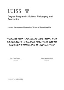 Valentini, Chiara (A.A. 2024/2025) Veridiction and disinformation: how generative ai shapes political truth between ethics and manipulation. Tesi di Laurea in Languages of innovation: where AI meets creativityy, Luiss Guido Carli, relatore Paolo Peverini, pp. 88. [Bachelor's Degree Thesis]