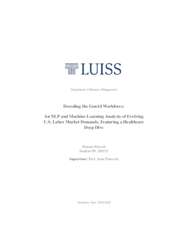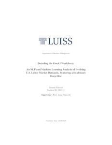 Filosofi, Simone (A.A. 2024/2025) Decoding the GenAI workforce: an NLP and machine learning analysis of evolving US labor market demands, featuring a healthcare deep dive. Tesi di Laurea in Algorithmis, Luiss Guido Carli, relatore Irene Finocchi, pp. 46. [Bachelor's Degree Thesis]