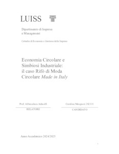Mengucci, Carolina (A.A. 2024/2025) Economia circolare e simbiosi industriale: il caso Rifò di moda circolare made in Italy. Tesi di Laurea in Economia e gestione delle imprese, Luiss Guido Carli, relatore Alfonsoluca Adinolfi, pp. 60. [Bachelor's Degree Thesis]