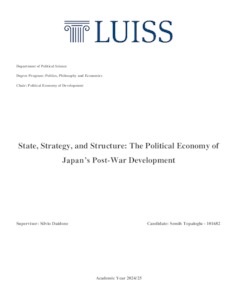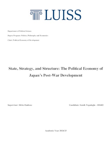 Topaloglu, Semih (A.A. 2024/2025) State, strategy and structure: the political economy of Japan’s post-war development. Tesi di Laurea in Political economy of development, Luiss Guido Carli, relatore Silvio Daidone, pp. 38. [Bachelor's Degree Thesis]
