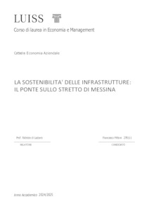 Pittoni, Francesco (A.A. 2024/2025) La sostenibilità delle infrastrutture: il ponte sullo stretto di Messina. Tesi di Laurea in Economia aziendale, Luiss Guido Carli, relatore Fabrizio Di Lazzaro, pp. 45. [Bachelor's Degree Thesis]
