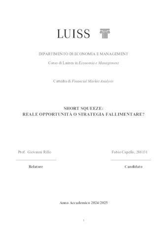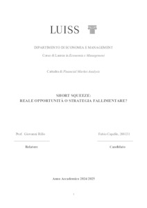 Capello, Fabio (A.A. 2024/2025) Short squeeze: reale opportunità o strategia fallimentare? Tesi di Laurea in Financial market analysis, Luiss Guido Carli, relatore Giovanni Rillo, pp. 46. [Bachelor's Degree Thesis]