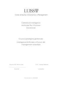 Manganiello, Giuseppe (A.A. 2024/2025) Il nuovo paradigma gestionale: intelligenza artificiale e il futuro del management aziendale. Tesi di Laurea in Intelligenza artificiale per i processi decisionali, Luiss Guido Carli, relatore Vittorio Carlei, pp. 37. [Bachelor's Degree Thesis]