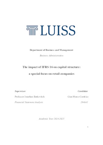 Cambise, Gian Marco (A.A. 2024/2025) The impact of IFRS 16 on capital structure: a special focus on retail companies. Tesi di Laurea in Financial statement analysis, Luiss Guido Carli, relatore Jonathan Berkovitch, pp. 41. [Bachelor's Degree Thesis]