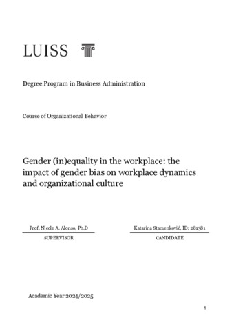 Stamenkovic, Katarina (A.A. 2024/2025) Gender (in)equality in the workplace: the impact of gender bias on workplace dynamics and organizational culture. Tesi di Laurea in Organizational behavior, Luiss Guido Carli, relatore Nicola Ashley Alonso, pp. 34. [Bachelor's Degree Thesis]