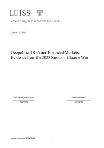 Nocerino, Federico (A.A. 2024/2025) Geopolitical risk and financial markets: evidence from the 2022 Russia–Ukraine war. Tesi di Laurea in Statistics, Luiss Guido Carli, relatore Marco Perone Pacifico, pp. 39. [Bachelor's Degree Thesis]