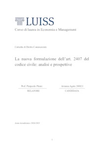 Agata, Arianna (A.A. 2024/2025) La nuova formulazione dell’art. 2407 del codice civile: analisi e prospettive. Tesi di Laurea in Diritto commerciale, Luiss Guido Carli, relatore Pierpaolo Pirani, pp. 52. [Bachelor's Degree Thesis]