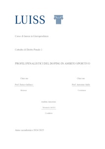 Amoroso, Andrea (A.A. 2024/2025) Profili penalistici del doping in ambito sportivo. Tesi di Laurea in Diritto penale 2, Luiss Guido Carli, relatore Enrico Gallucci, pp. 107. [Single Cycle Master's Degree Thesis]