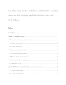 Andreano, Nicole (A.A. 2024/2025) La tutela della privacy nell'ambito matrimoniale: un'analisi comparata delle discipline giuridiche di Italia e Stati Uniti. Tesi di Laurea in Diritto privato comparato, Luiss Guido Carli, relatore Livia Ventura, pp. 151. [Single Cycle Master's Degree Thesis]