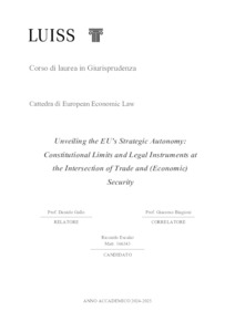 Escalar, Riccardo (A.A. 2024/2025) Unveiling the EU’s strategic autonomy: constitutional limits and legal instruments at the intersection of trade and (economic) security. Tesi di Laurea in European economic law, Luiss Guido Carli, relatore Daniele Gallo, pp. 249. [Single Cycle Master's Degree Thesis]