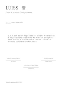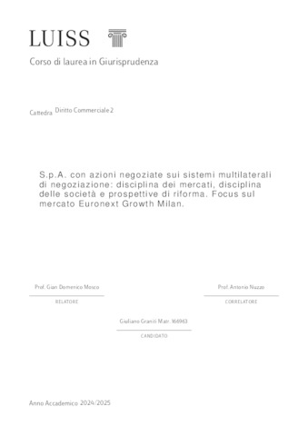 Graniti, Giuliano (A.A. 2024/2025) S.p.a. con azioni negoziate sui sistemi multilaterali di negoziazione: disciplina dei mercati, disciplina delle società e prospettive di riforma: focus sul mercato Euronext Growth Milan. Tesi di Laurea in Diritto commerciale 2, Luiss Guido Carli, relatore Gian Domenico Mosco, pp. 303. [Master's Degree Thesis]