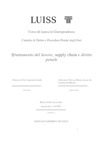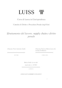 Lovecchio, Maria Stella (A.A. 2024/2025) Sfruttamento del lavoro, supply chain e diritto penale. Tesi di Laurea in Diritto e procedura penale degli enti, Luiss Guido Carli, relatore Antonino Gullo, pp. 209. [Single Cycle Master's Degree Thesis]