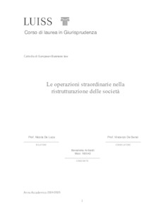 Anibaldi, Benedetta (A.A. 2024/2025) Le operazioni straordinarie nella ristrutturazione delle società. Tesi di Laurea in European business law, Luiss Guido Carli, relatore Nicola De Luca, pp. 120. [Single Cycle Master's Degree Thesis]
