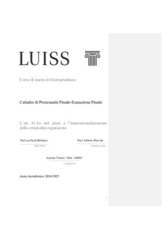 Todaro, Jasmine (A.A. 2024/2025) L’art. 41-bis ord. penit. e l’internazionalizzazione della criminalità organizzata. Tesi di Laurea in Processuale penale-esecuzione penale, Luiss Guido Carli, relatore Paola Balducci, pp. 131. [Single Cycle Master's Degree Thesis]