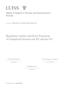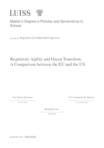 Iorio, Benedetta (A.A. 2024/2025) Regulatory agility and green transition: a comparison between the EU and the US. Tesi di Laurea in Regulation by independent agencies, Luiss Guido Carli, relatore Marta Simoncini, pp. 56. [Master's Degree Thesis]