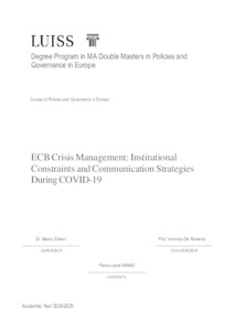 Leslie, Pierce Brian (A.A. 2024/2025) ECB crisis management: institutional constraints and communication strategies during Covid-19. Tesi di Laurea in European political economy in times of crises, Luiss Guido Carli, relatore Marco Simoni, pp. 66. [Master's Degree Thesis]