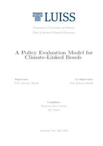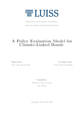 Ceccotti, Francesca Sara (A.A. 2024/2025) A policy evaluation model for climate-linked bonds. Tesi di Laurea in Advanced financial economics, Luiss Guido Carli, relatore Giacomo Morelli, pp. 68. [Master's Degree Thesis]