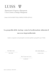 Celesti, Piergiovanni (A.A. 2024/2025) La geografia delle start-up: come la localizzazione alimenta il successo imprenditoriale: analisi comparativa dei principali ecosistemi globali e prospettive per l’Italia. Tesi di Laurea in Management delle imprese internazionali, Luiss Guido Carli, relatore Matteo Giuliano Caroli, pp. 120. [Master's Degree Thesis]