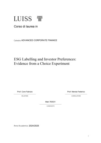 Feo, Emilio (A.A. 2024/2025) ESG labelling and investor preferences: evidence from a choice experiment. Tesi di Laurea in Advanced corporate finance, Luiss Guido Carli, relatore Fabrizio Core, pp. 61. [Master's Degree Thesis]