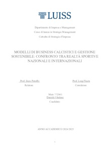 Vitalone, Daniele (A.A. 2024/2025) Modelli di business calcistici e gestione sostenibile: confronto tra realtà sportive nazionali e internazionali. Tesi di Laurea in Strategie d'impresa, Luiss Guido Carli, relatore Enzo Peruffo, pp. 201. [Master's Degree Thesis]