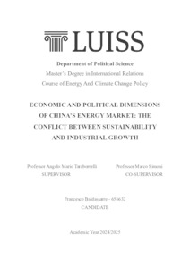 Baldassarre, Francesco (A.A. 2024/2025) Economic and political dimensions of China’s energy market: the conflict between sustainability and industrial growth. Tesi di Laurea in Energy and climate change policy, Luiss Guido Carli, relatore Angelo Taraborrelli, pp. 141. [Master's Degree Thesis]