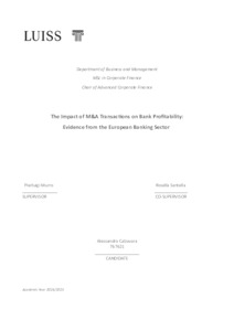 Calzavara, Alessandro (A.A. 2024/2025) The impact of M&A transactions on bank profitability: evidence from the European banking sector. Tesi di Laurea in Advanced corporate finance, Luiss Guido Carli, relatore Pierluigi Murro, pp. 62. [Master's Degree Thesis]