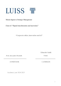 Guidi, Edoardo (A.A. 2024/2025) Corporate ethics, innovation and AI. Tesi di Laurea in Digital transformation and innovation, Luiss Guido Carli, relatore Alessandro Mechelli, pp. 86. [Master's Degree Thesis]