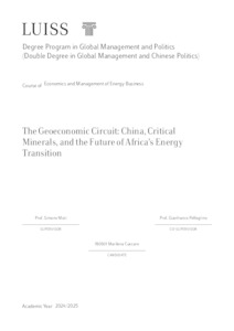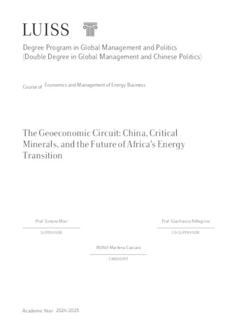 Cuccaro, Marilena (A.A. 2024/2025) The geoeconomic circuit: China, critical minerals and the future of Africa’s energy transition. Tesi di Laurea in Corporate strategy, Luiss Guido Carli, relatore Simone Mori, pp. 108. [Master's Degree Thesis]
