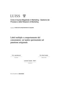 Casadei, Leonardo (A.A. 2024/2025) Label multiple e comportamento del consumatore: un'analisi sperimentale sul panettone artigianale. Tesi di Laurea in Analisi del comportamento di acquisto, Luiss Guido Carli, relatore Luigi Monsurro, pp. 75. [Master's Degree Thesis]