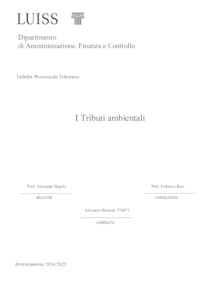 Brienza, Salvatore (A.A. 2024/2025) I tributi ambientali. Tesi di Laurea in Diritto processuale tributario, Luiss Guido Carli, relatore Giuseppe Napoli, pp. 110. [Master's Degree Thesis]