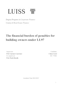 Lenzi, Chiara (A.A. 2024/2025) The financial burden of penalties for building owners under LL97. Tesi di Laurea in Advanced corporate finance, Luiss Guido Carli, relatore Gaetano Casertano, pp. 48. [Master's Degree Thesis]