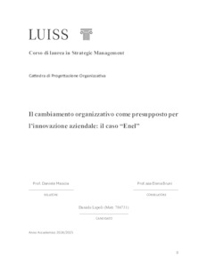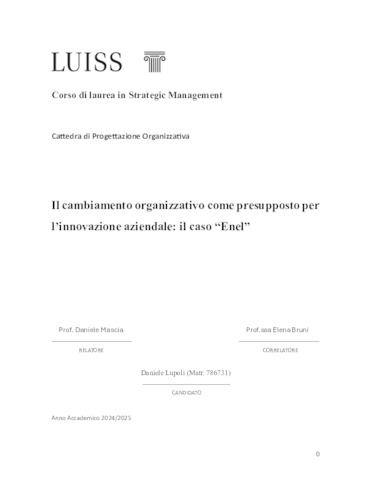 Lupoli, Daniele (A.A. 2024/2025) Il cambiamento organizzativo come presupposto per l’innovazione aziendale: il caso ENEL. Tesi di Laurea in Progettazione organizzativa, Luiss Guido Carli, relatore Daniele Mascia, pp. 73. [Master's Degree Thesis]