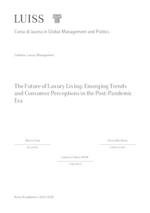 Callista, Ludovica (A.A. 2024/2025) The future of luxury living: emerging trends and consumer perceptions in the post-pandemic era. Tesi di Laurea in Luxury management, Luiss Guido Carli, relatore Alberto Festa, pp. 68. [Master's Degree Thesis]