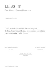 Puzone, Giuseppe (A.A. 2024/2025) Dalla percezione all'efficienza: l'impatto dell'intelligenza artificiale sui processi contabili e reddituali nelle PMI italiane. Tesi di Laurea in Analisi finanziaria, Luiss Guido Carli, relatore Barbara Sveva Magnanelli, pp. 56. [Master's Degree Thesis]