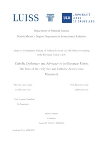 Miniati, Filippo (A.A. 2024/2025) Catholic diplomacy and advocacy in the European Union: the role of the holy see and catholic actors since Maastricht. Tesi di Laurea in Comparative history of political systems, Luiss Guido Carli, relatore Giovanni Orsina, pp. 102. [Master's Degree Thesis]