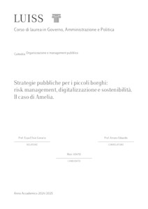 Mostarda, Chiara (A.A. 2024/2025) Strategie pubbliche per i piccoli borghi: risk management, digitalizzazione e sostenibilità: il caso di Amelia. Tesi di Laurea in Organizzazione e menagement pubblico, Luiss Guido Carli, relatore Gonario Espa Efisio, pp. 103. [Master's Degree Thesis]