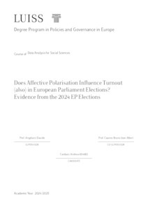 Carducci, Andrea (A.A. 2024/2025) Does affective polarization influence turnout (also) in European Parliament elections? Evidence from the 2024 ep elections. Tesi di Laurea in Data analysis for social sciences, Luiss Guido Carli, relatore Davide Angelucci, pp. 51. [Master's Degree Thesis]