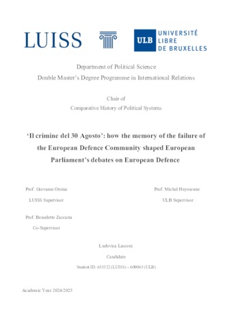 Lasconi, Ludovica (A.A. 2024/2025) Il crimine del 30 agosto: how the memory of the failure of the European defense community shaped European Parliament’s debates on European defense. Tesi di Laurea in Comparative history of political systems, Luiss Guido Carli, relatore Giovanni Orsina, pp. 103. [Master's Degree Thesis]