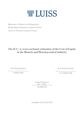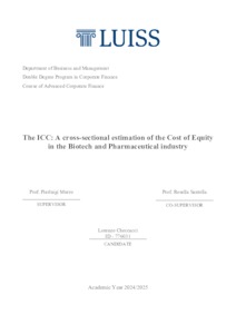 Checcacci, Lorenzo (A.A. 2024/2025) The ICC: a cross-sectional estimation of the cost of equity in the BioTech and pharmaceutical industry. Tesi di Laurea in Advanced corporate finance, Luiss Guido Carli, relatore Pierluigi Murro, pp. 37. [Master's Degree Thesis]
