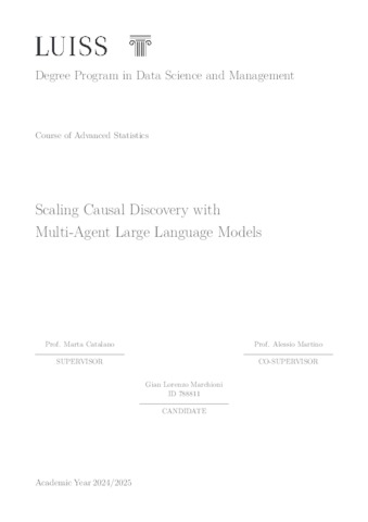 Marchioni, Gian Lorenzo (A.A. 2024/2025) Scaling causal discovery with multi-agent large language models. Tesi di Laurea in Advanced statistics, Luiss Guido Carli, relatore Marta Catalano, pp. 73. [Master's Degree Thesis]