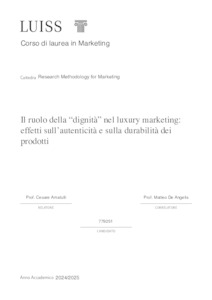 Ippoliti, Arianna (A.A. 2024/2025) Il ruolo della dignità nel luxury marketing: effetti sull’autenticità e sulla durabilità dei prodotti. Tesi di Laurea in Research methodology for marketing, Luiss Guido Carli, relatore Cesare Amatulli, pp. 88. [Master's Degree Thesis]